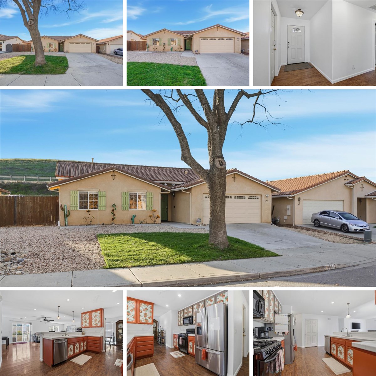 Welcome to this sought-after Mission Heights neighborhood in San Miguel, offering a well-maintained, single-level four-bedroom, two-bath residence that is move-in ready. A spacious and inviting front yard, ample driveway, and attached two-car garage create excellent curb appeal. The front entry opens to a welcoming hall that flows seamlessly into a bright great room, where the kitchen is open to both the living and dining areas; ideal for everyday living and entertaining. The kitchen features counter seating and plenty of workspace and cabinets. Sliding glass doors extend the living area to a fully fenced, low-maintenance backyard. The generously sized primary suite includes an ensuite bathroom and a large walk-in closet. Three additional bedrooms are down the hallway and share a full bathroom. Abundant windows throughout the home provide natural light. An attached two-car garage offers direct access to the home for added convenience.