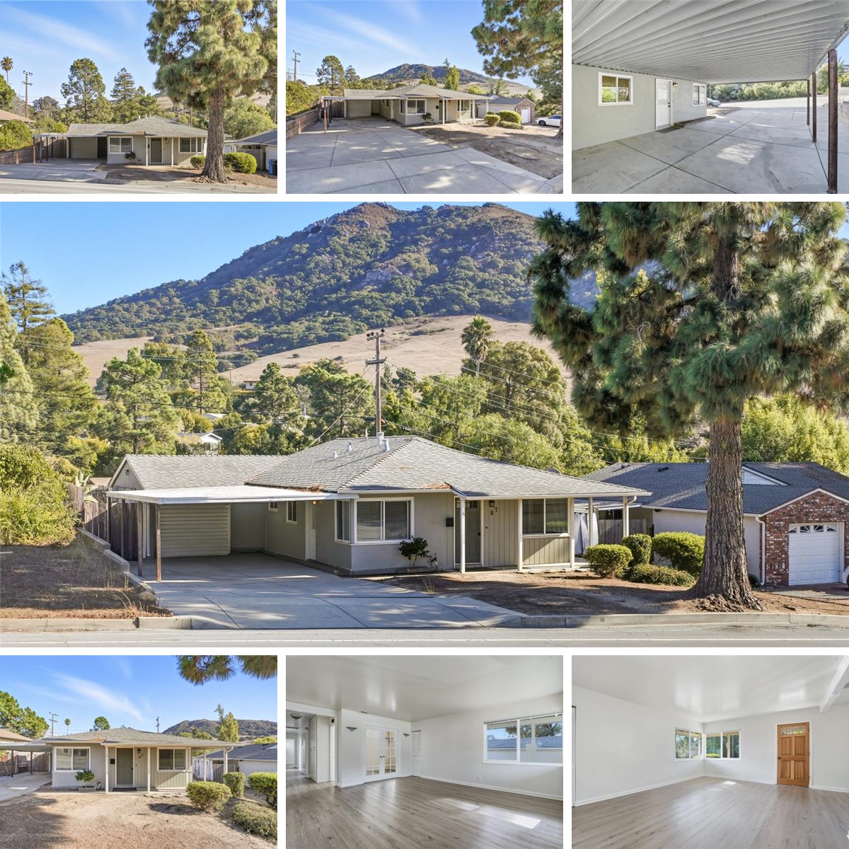 Stylish Single-Level Home Near Cal Poly with Views & Private Yard. Welcome to this beautifully maintained 4-bedroom, 2-bathroom home offering 1,318 sq. ft. of inviting living space just one mile from Cal Poly. Thoughtfully updated and move-in ready, this home blends comfort, convenience, and classic San Luis Obispo charm. Step inside to a bright, open layout featuring new VLP flooring throughout, updated kitchen that features quartz countertops and tile backsplash. The well-equipped kitchen includes a dishwasher and plenty of storage. Both bathrooms have been nicely upgraded with modern finishes and all windows have been change out to double pane. Single car garage & covered carport for extra parking. Unwind in the private fenced backyard, framed by gorgeous views of Bishop Peak and Madonna Mountain—a perfect setting for outdoor dining, entertaining, or simply soaking up the sunshine. Single car garage plus carport for extra parking. Convenient proximity to Cal Poly, shopping, restaurants & Bishop Peak trailhead. This home is super clean and move-in ready!